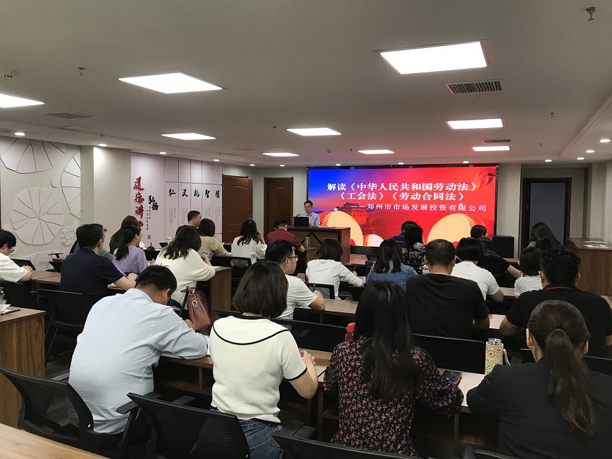根據(jù)《2021年鄭州市普法依法治理工作要點(diǎn)》文件精神和市國資委關(guān)于普法教育工作要求,為扎實(shí)推進(jìn)普法依法治理工作,為“八五”普法開好局、起好步,5月13日下午,鄭州市市場發(fā)展投資有限公司組織開展《中華人民共和國勞動(dòng)法》《工會法》《勞動(dòng)合同法》等法律知識講座,公司本部全體人員、各子公司中層以上管理人員及法務(wù)部、經(jīng)營部工作人員參加培訓(xùn)。